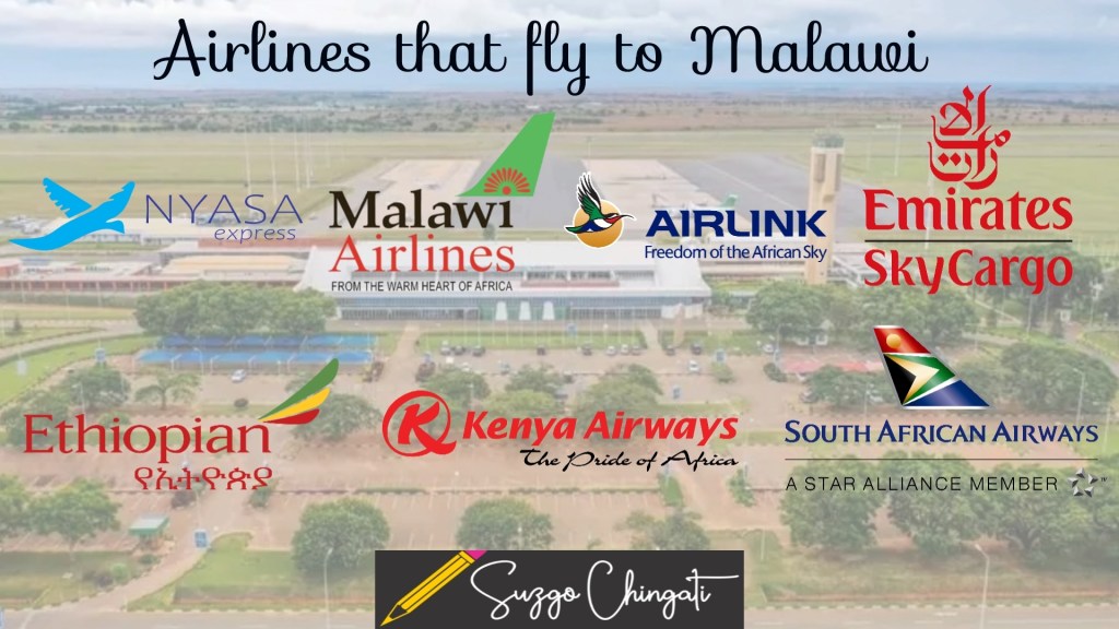 Chileka international airport: Located in the commercial city of Blantyre. From chileka airport there are direct flights to Ethiopia, Tanzania, Zambia, Zimbabwe and South Africa.