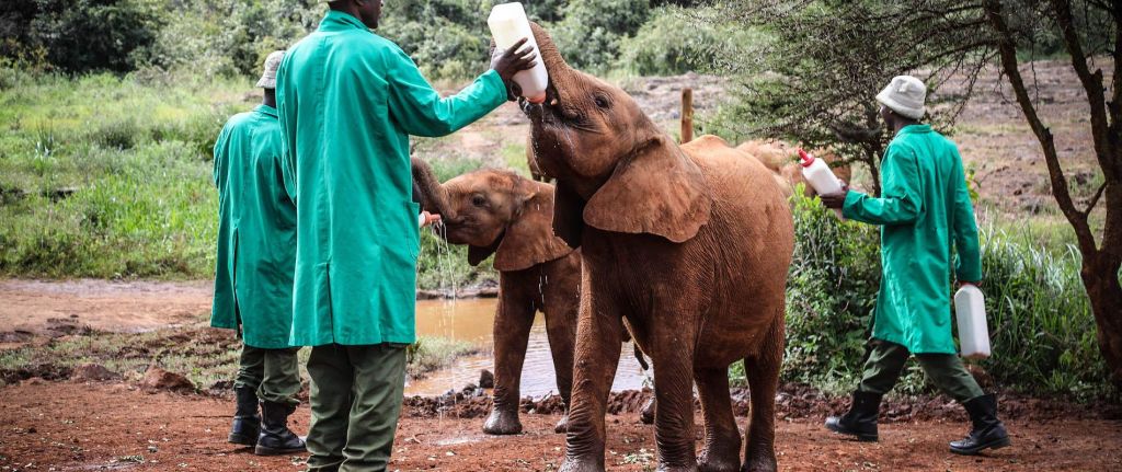 Elephant Orphanage or David Sheldrick Wildlife Trust is a rescue and rehabilitation centre for elephants in Nairobi National Park off Magadi Road. It houses orphaned baby elephants due to poaching, drought or other human-wildlife conflicts. You can watch them be fed and cleaned in a mud bath. Photography is allowed, and there is a small gift shop to buy souvenirs. The baby elephants are kept in a nursery for the first 2-3 years when they are milk-dependent and then transferred to the Reintegration Centre in Tsavo East National Park, where they are released into the wild. The elephants are also up for adoption, and potential adopters can book an evening appointment with the management. Recently, the project has expanded to include shelter operations for rhinos and giraffes. The only time to see the elephants is from 11:00 AM to 12:00 PM, when the keepers bring the elephants to a cordoned area to play, feed, and show the public how well they are doing.