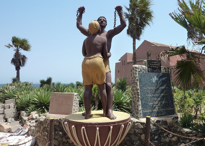 The Liberation from Slavery statue. This powerful statue of two people embracing as their chains are released is located close to the Slave House. The statue was a gift from the people of Guadeloupe, which has a strong slave heritage, to their brothers and sisters back in the homeland of Africa.