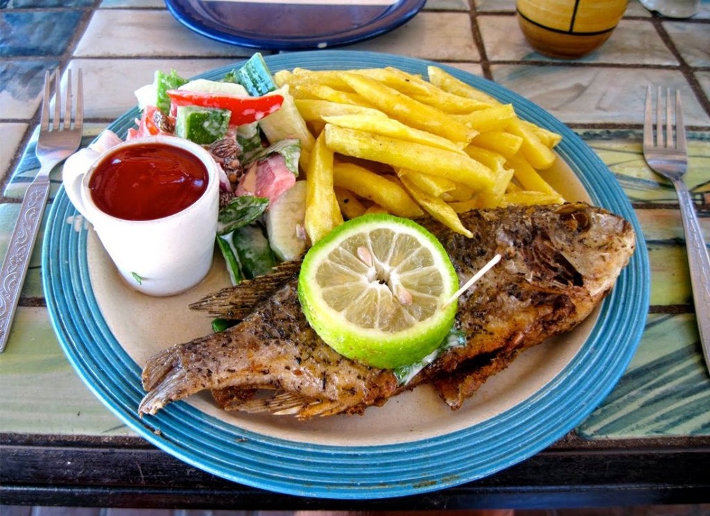 Chambo This is a type of fish that is found in Lake Malawi and is a staple food in Mangochi. It is usually grilled or fried and served with a side of Nsima or Rice or Chips.